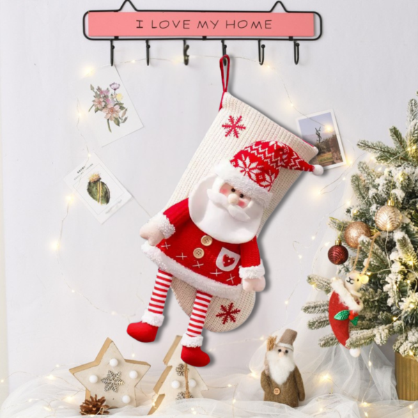 Christmas Santa Claus Stocking Red & White